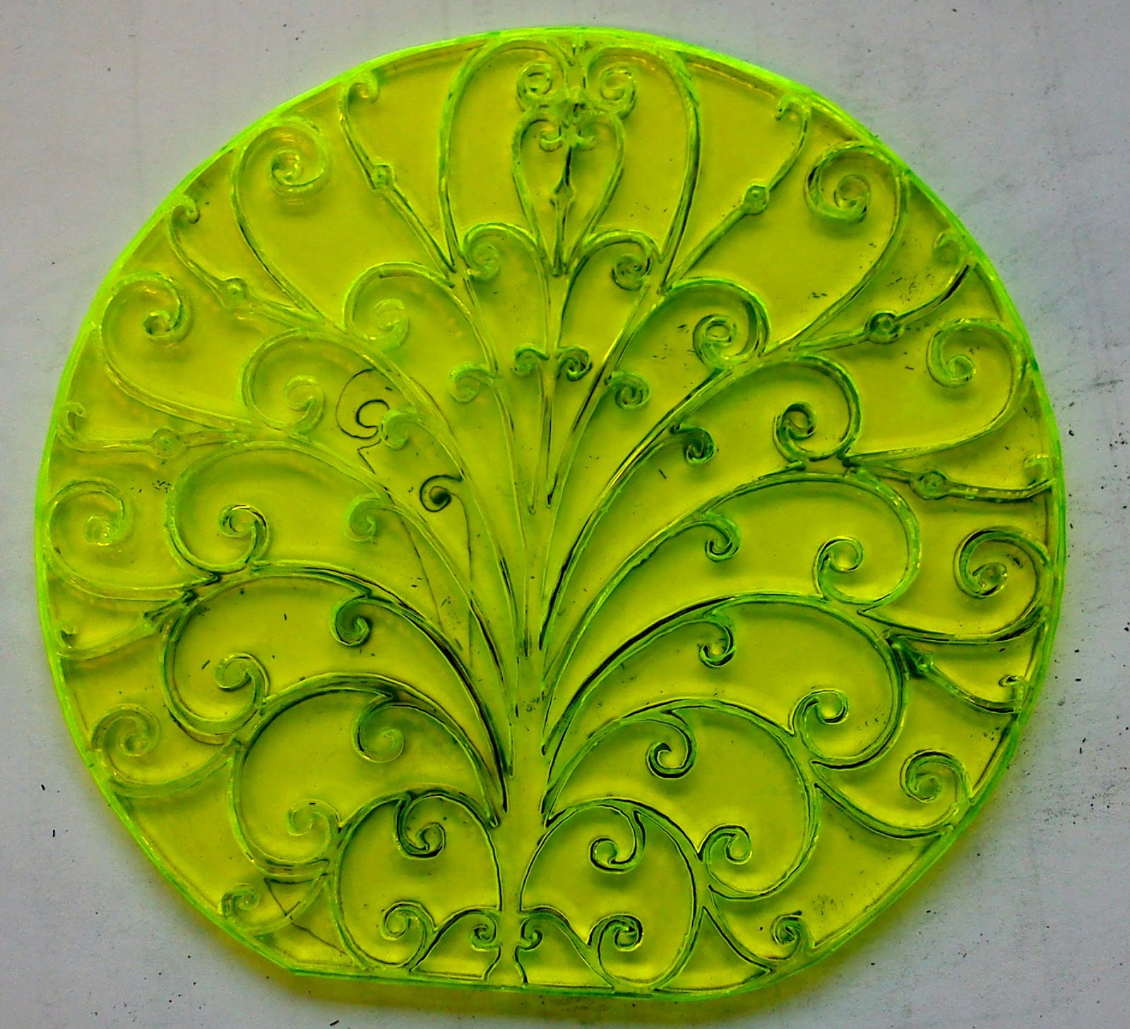 Today I had much better success laser cutting, the previous piece was so thin that once the inner cutting where removed there wasn't much of the structure left to hold it together, below I put a contour line 1mm around the original line meaning that it was at least 2mm thick, the outcome was very successful. (excuse bad images, taken with phone, through the laser cutter window)